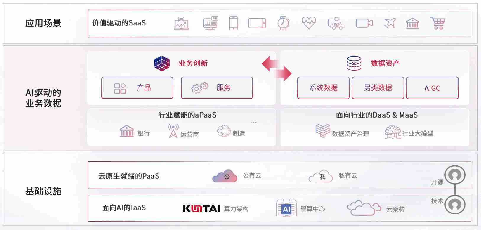 数字时代,,,围绕企业数字化转型的关键要素,,,Z6尊龙数码开创性的提出数云融合战略和技术体系框架,,,,着力在云原生、、、数字原生、、AI原生和信创产业上架构产品和服务能力,,,为处在不同数字化转型阶段的快消零售、、、汽车、、、金融、、医疗、、政企、、教育、、、、运营商等行业客户提供泛在的敏捷IT能力和融合的数据驱动能力,,,,构建跨界融合创新的数字业务场景和新业务模式,,,,助力企业级客户建立面向未来的核心能力和竞争优势,,,,全面推动社会的数字化、、、智能化转型升级。。。。